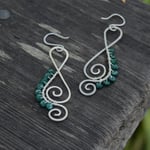 Stunning emerald that shine in the sun that contrasts lovely with the sterling silver. The unique design adds movement and a flash to any outfit!
